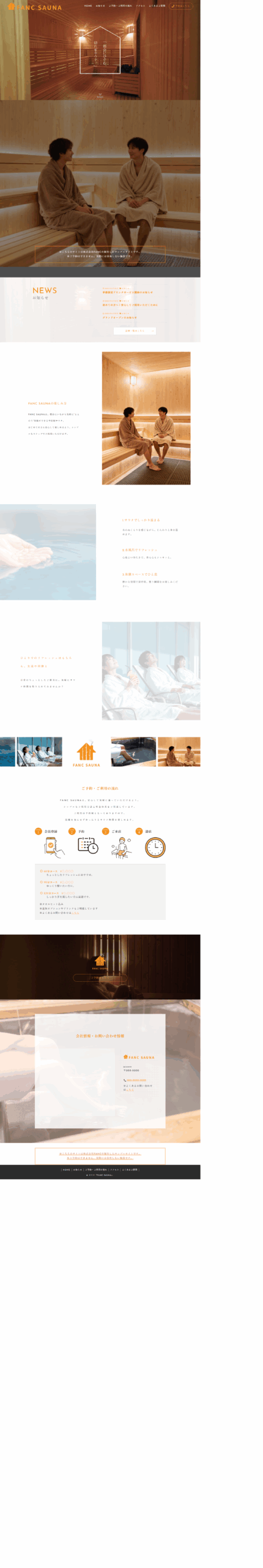 サウナ・温浴施設を想定したサンプルサイトです。クライアントは実在しない設定ですが、FANCとして、サウナ特有の “整う体験”リラックス空間の心地よさ をオンラインでも伝えられるよう、世界観づくりを重視したデザインを行っています。